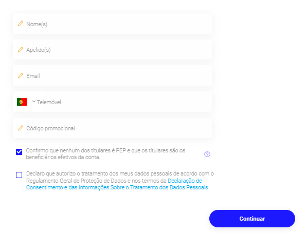 Por fim, também é necessário fazer um depósito inicial de 100€ para ativar a sua conta antes de começar a utilizá-la.