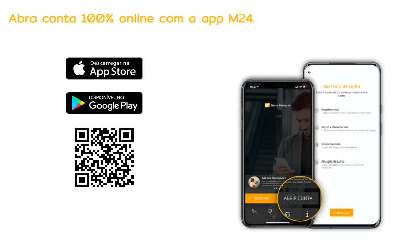 Atualmente, a abertura da conta digital Montepio só pode ser realizada pelo App M24. Ela tem um processo bem simples e que leva menos de 20 minutos, basta seguir os passos descritos abaixo:
