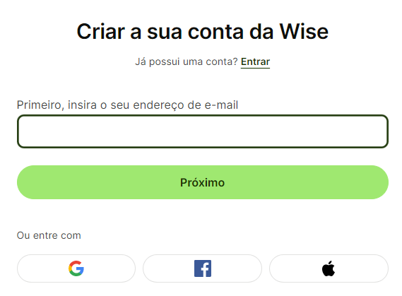 Para abrir sua conta usando seu computador, basta entrar na página da Wise e seguir os passos descritos abaixo: