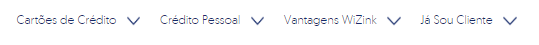 - Clique no menu “Cartões de Crédito” e depois em uma das três opções: Wizink Flex, Rewards ou Cartão Benfica;