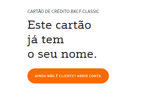 O cartão de crédito BKCF Classic tem cobertura internacional, bandeira Visa e seguro gratuito. Clique aqui para saber como solicitar o seu!