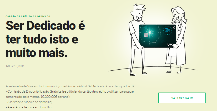 Você pode solicitar o cartão CA Dedicado online. Para isso, basta entrar na página do cartão e clicar no botão “Pedido de Contato”.