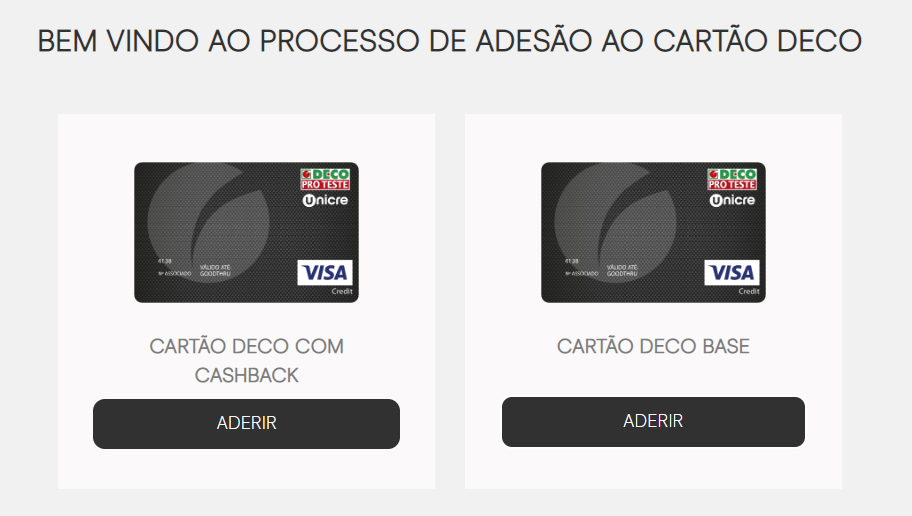 O cartão Deco Proteste foi criado em parceria com a Unicre e está disponível em duas versões que você pode escolher. Uma delas tem taxas de juros menores e a outra oferece 1% de cashback.