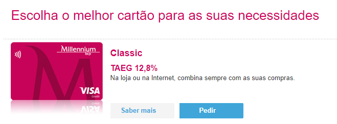 Em primeiro lugar, você pode fazer o pedido do cartão entrando na página oficial do Millennium BCP Classic. Para isso, basta clicar no botão que diz “pedir cartão” do lado direito da página.