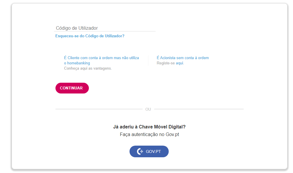 Você então será levado a uma página que pedirá o seu código de utilizador ou uma chave móvel digital. Depois basta seguir as instruções que aparecem na tela para finalizar o seu pedido.