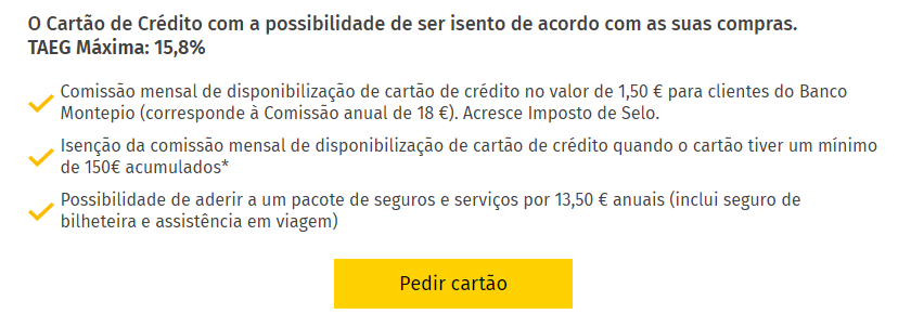 O cartão de crédito Montepio Classic tem Isenção da Anuidade e Cobertura Internacional.