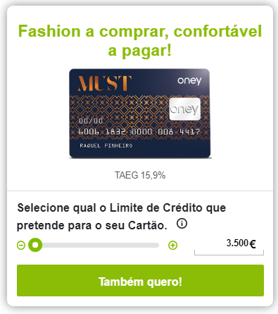 O cartão Must funciona como um cartão pré-pago e um cartão de crédito. Além disso, você pode utilizá-lo para fazer suas compras nas lojas aderentes no Freeport Lisboa Fashion Outlet, Vila do Conde Porto Fashion Outlet, além das lojas Norauto.