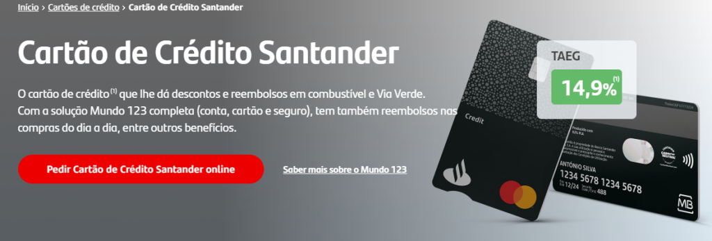 Com o cartão Santander, você tem um limite de crédito de até 10.000€. Além disso, também pode fazer compras não só em Portugal, mas também no exterior, já que ele tem a bandeira Mastercard e Cobertura Internacional.