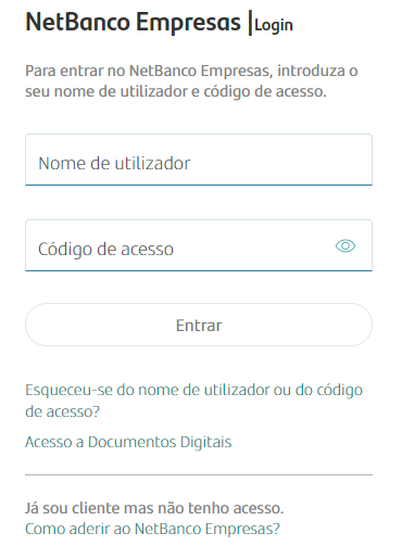 Em seguida, você deve fazer login no NetBanco Empresas, para isso, é só informar seu nome de utilizador, código de acesso e clicar em “Entrar”.