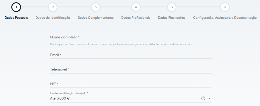 Uma vez que tenhas decidido, é só clicar no botão “aderir”. Serás então levado para uma página na qual precisarás seguir todos os passos e preencher os seguintes dados: