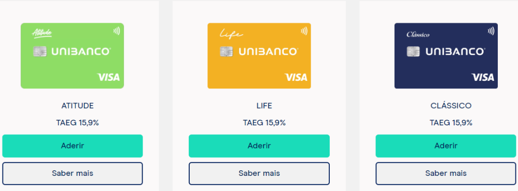 Para solicitar o teu cartão Unibanco, podes utilizar o teu computador ou telemóvel. Em primeiro lugar, deves entrar no site do Unibanco e escolher um dos três cartões disponíveis.