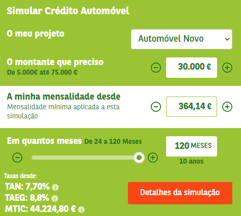Além disso, você pode solicitar até até 75.000€, tem prazo de até 10 anos para finalizar o pagamento e paga mensalidades fixas. Também vale destacar que a instituição não cobra comissão de abertura do crédito ou de antecipação das mensalidades.