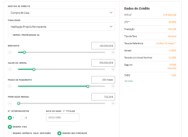 • Além disso, também será necessário optar pelos seguros, informar o número de proponentes e o período relativo à atualização das taxas;