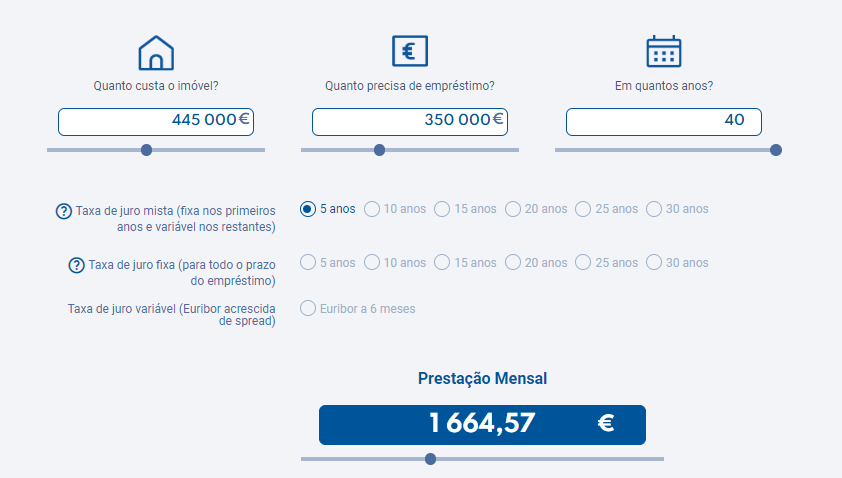 - Preencher no simulador: o valor do imóvel, o montante e o prazo desejados;