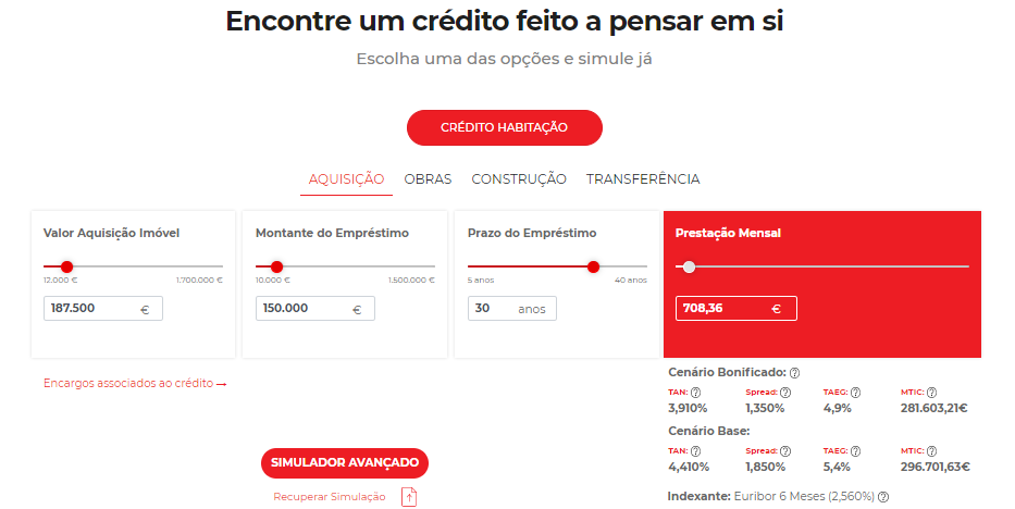 - Possibilidade de escolher entre taxas fixas, variáveis ou mistas;