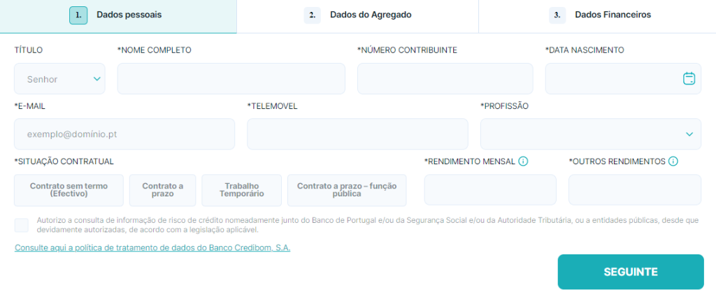 - Depois deve fazer o mesmo para os dados do seu agregado familiar e seus dados financeiros.