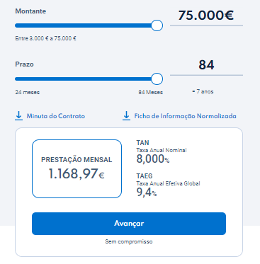 - Especificar o montante e o prazo desejado no simulador, além de conferir se as taxas e os valores da prestação estão de acordo com o que você deseja;