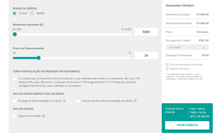 O crédito pessoal Novo Banco oferece aos seus clientes um limite de crédito adequado a cada necessidade. O valor disponível pode variar de 5.000 a 75.000 euros e o prazo de pagamento é de até 7 anos.