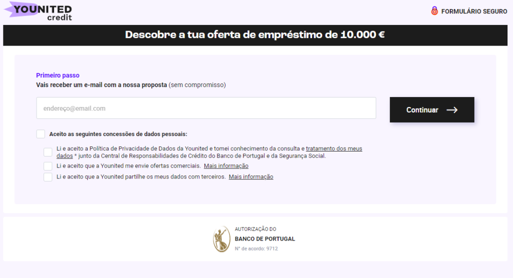A Younited Credit é uma fintech que oferece soluções financeiras, como crédito pessoal. Nela, você pode solicitar até um valor de até 50.000€ e conta com prazo de 2 a 7 anos para o pagamento.