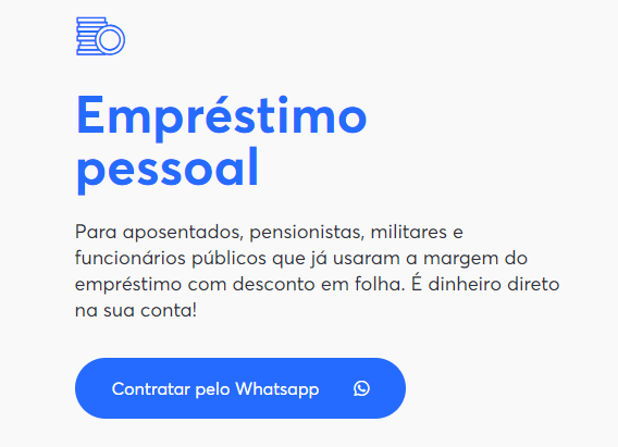 - Disponível para quem está sem margem para o empréstimo consignado;