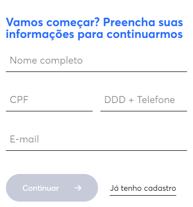 - Preencha os campos com seus dados pessoais e clique no botão “Continuar”, ou na opção “Já tenho cadastro”, se este for seu caso;