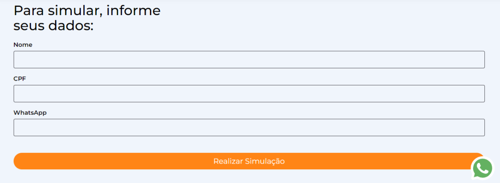 - Em seguida, informe os dados solicitados, como seu nome, número de Whatsapp e CPF;