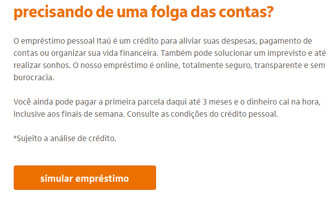No entanto se você já tem uma conta no Itaú, confira a seguir como é simples solicitar este empréstimo: